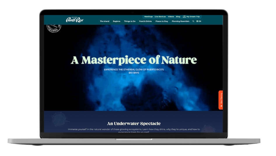Puerto Rico has no shortage of beauty to share. The challenge? Making sure that richness came through online in a way that felt simple, inspiring, and useful. Our website redesign gave Discover Puerto Rico a digital home that’s as easy to navigate as it is stunning to explore. From trip planning tools to immersive storytelling, the site gives travelers a true sense of the island—before they ever set foot on it.