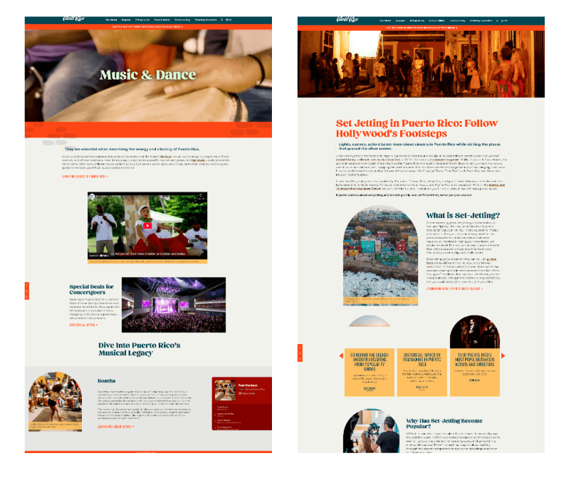 To make sure no gem goes undiscovered, themed hubs center on Puerto Rico’s biggest cultural flexes—Baseball, Set-Jetting, Music & Dance. These aren’t content piles. They’re curated experiences designed to keep users engaged and SEO on point.