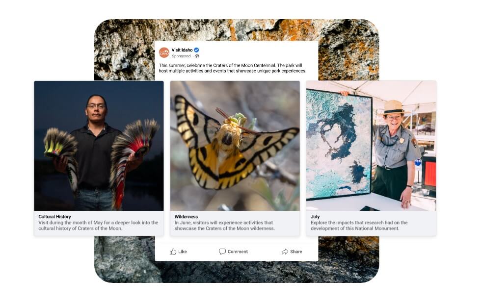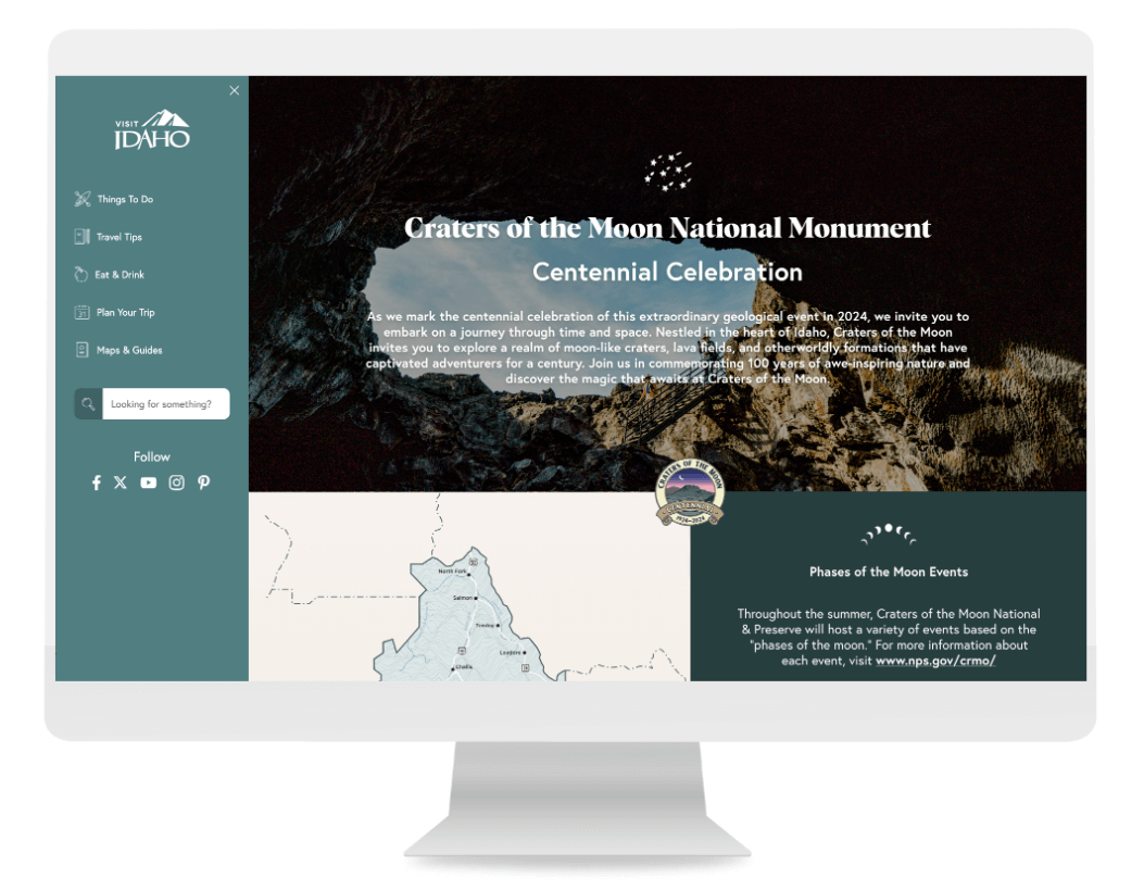 Craters of the Moon is one of Idaho’s most unique landscapes—an expanse of lava fields that feels more lunar than earthly. Visit Idaho wanted to showcase this hidden wonder to spark curiosity and drive new visits. Madden built a digital campaign that put Craters on the map, leaning into its surreal visuals and science-meets-adventure story. The goal was simple: make travelers stop scrolling, imagine themselves exploring, and choose Idaho for their next trip.
