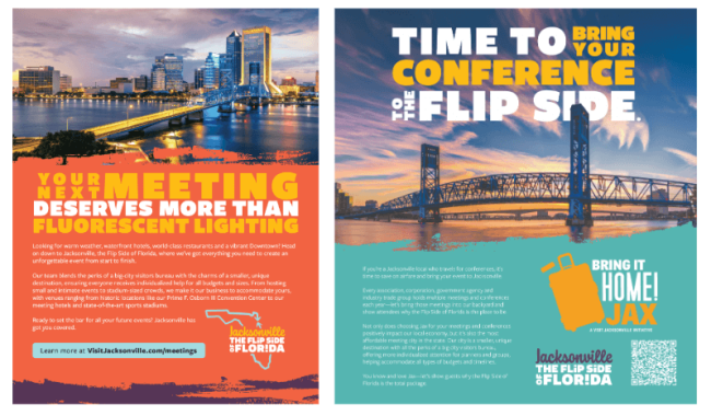 To reach the right planners, we’re combining smart ad placements with location-based tactics. Geofencing industry events keeps Jacksonville top-of-mind in real time, while buys with MPI, IGLTA, FSAE, and Black Meeting Professionals ensure visibility where it matters most.
