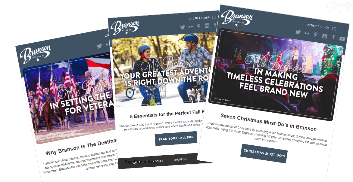Cooperative marketing programs pose the perfect opportunity for communities to collaborate with and boost unique partnerships. In 2021, Explore Branson partnered with Madden to offer cooperative sales opportunities to their partners. Five co-op opportunities were offered that aligned with the Branson/Lakes Area CVB’s overall destination marketing strategy. Participants were featured in both the Official Annual Visitor Guide and ExploreBranson.com, which gave coverage across a spectrum of both print and digital media.