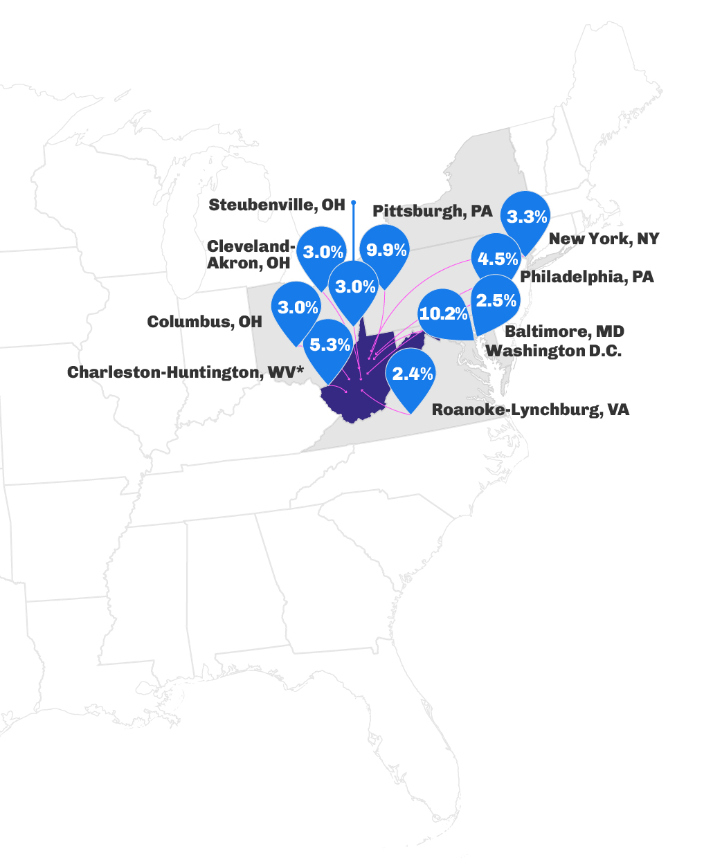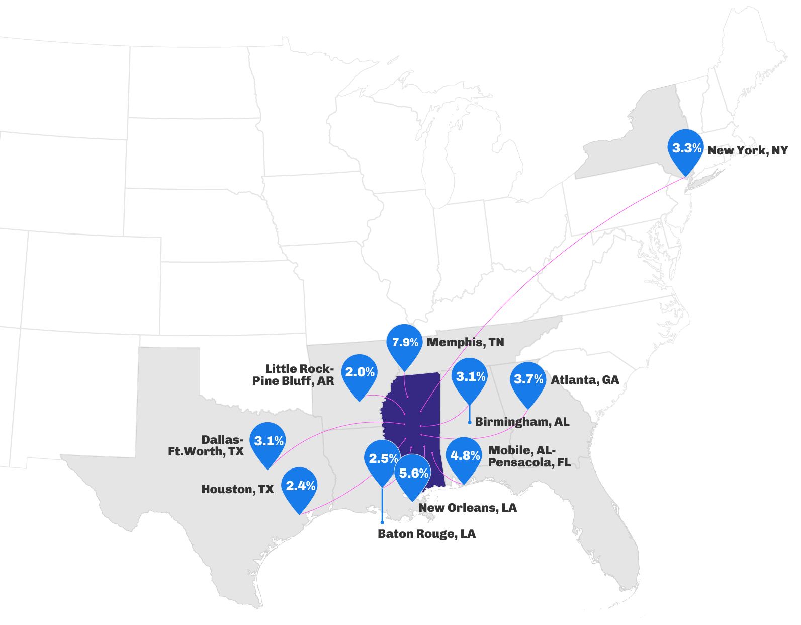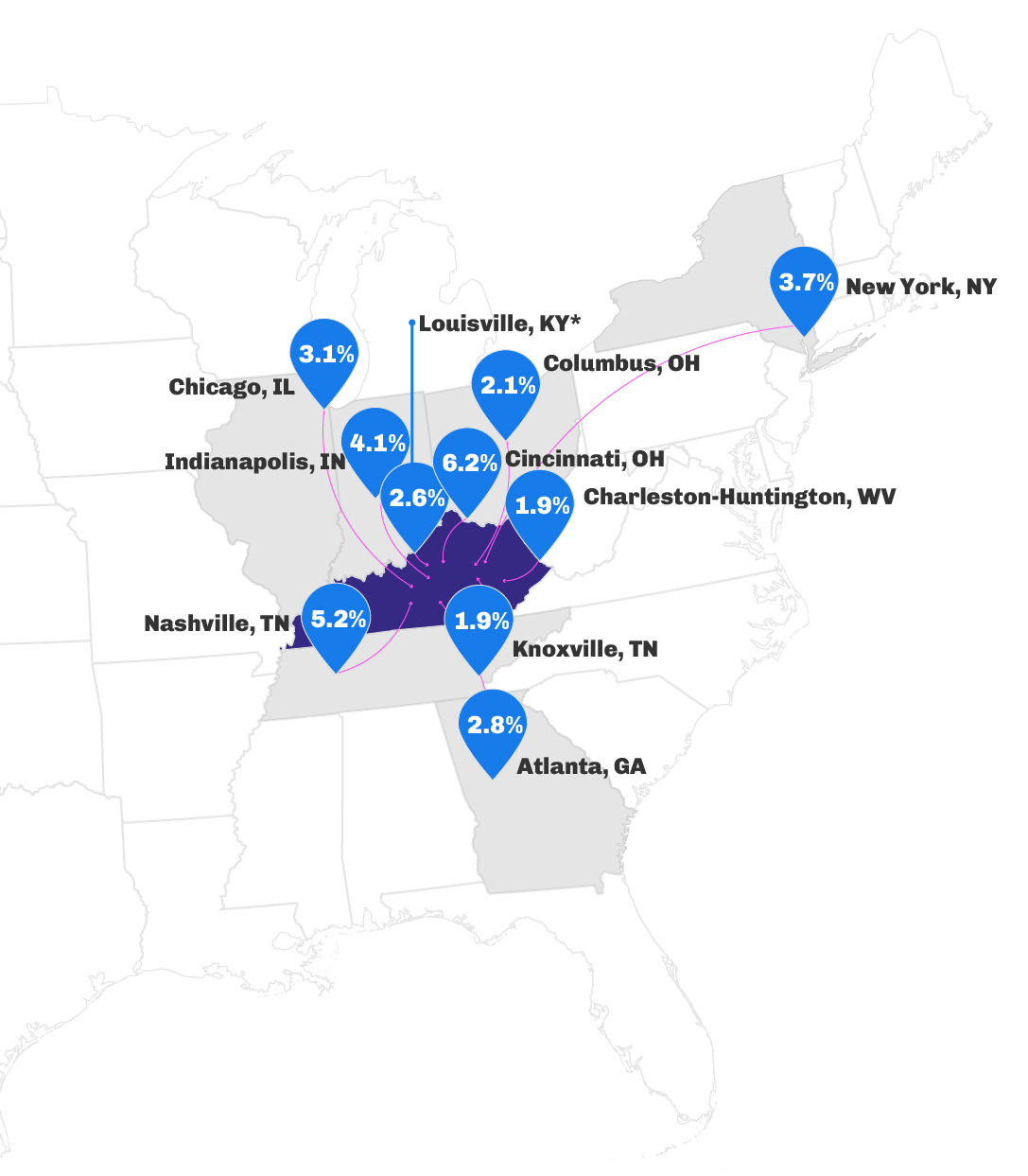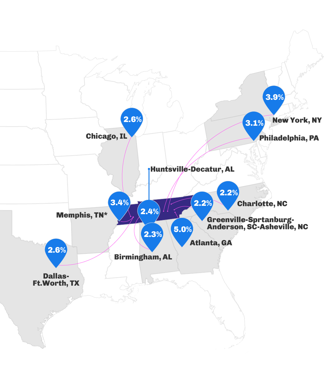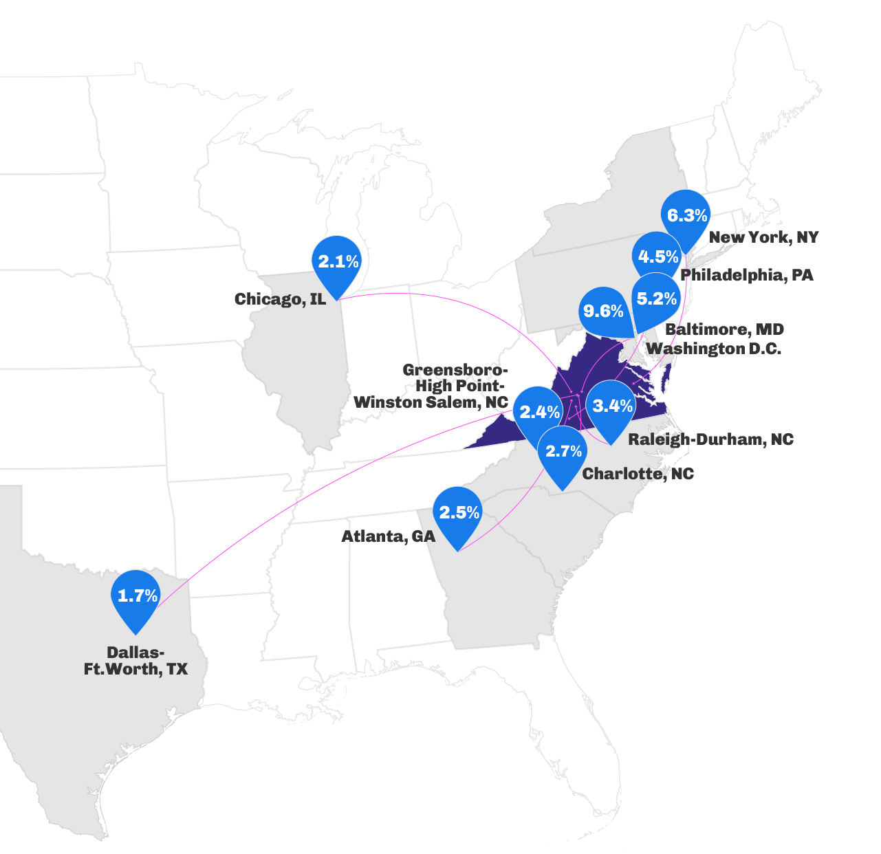 - New York City and Chicago were two reliable origin markets for the Northeast that dropped their inbound traffic YOY